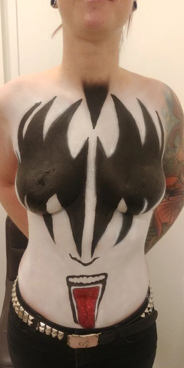 Le maquillage est facile à enlever au savon. Nous pouvons réaliser de tout en bodypaint. Un bodypaint peut prendre de 3 à 6 hr à réaliser.